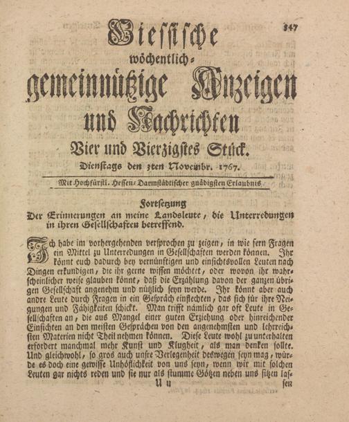 Giessische wöchentliche gemeinnützige Anzeigen und Nachrichten. 1764-1770