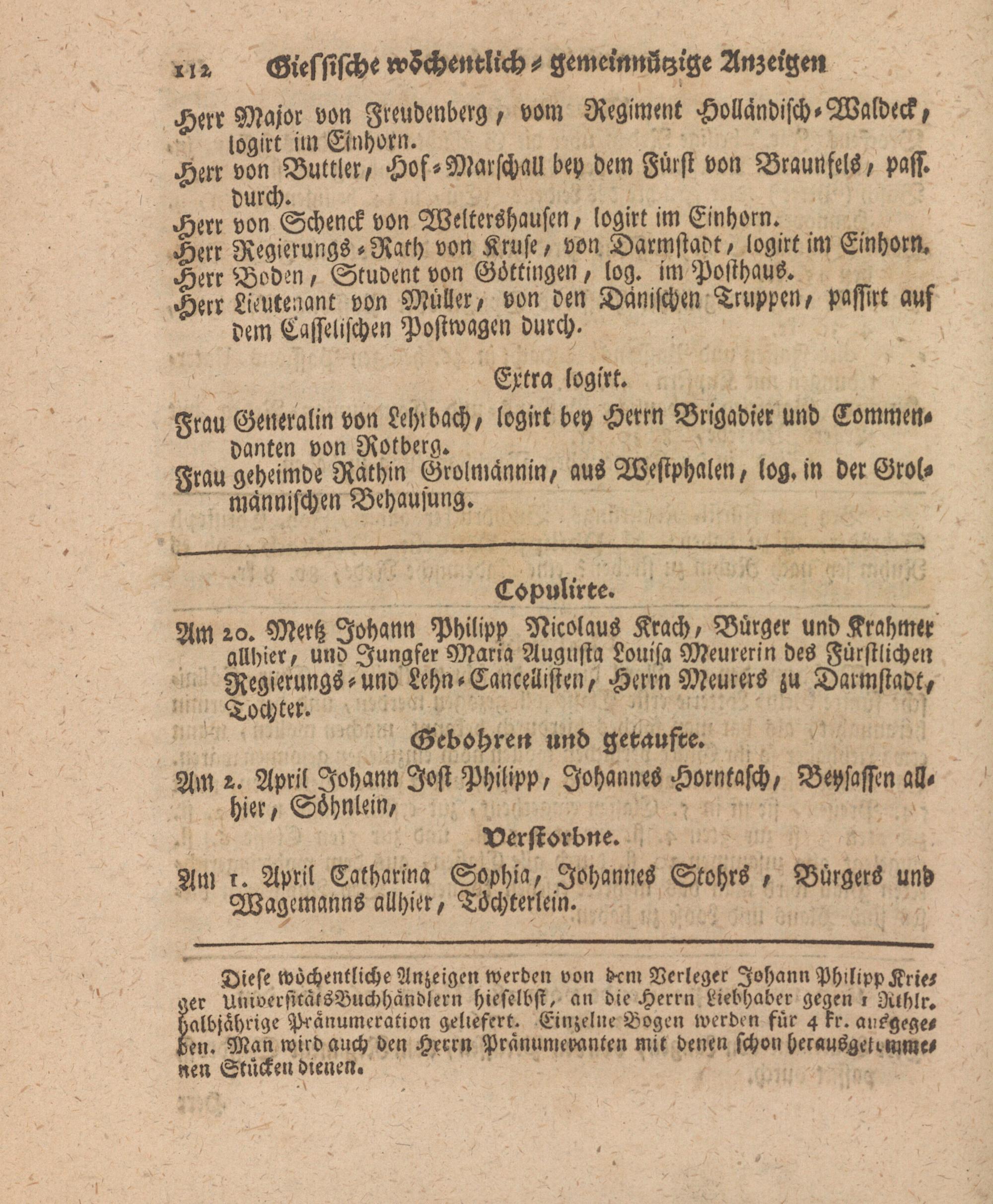 Giessische wöchentliche gemeinnützige Anzeigen und Nachrichten. 1764-1770