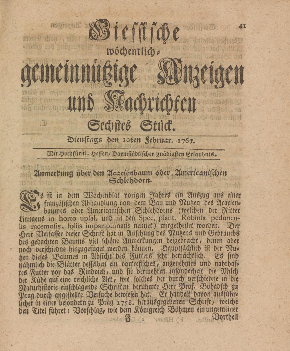 Giessische wöchentliche gemeinnützige Anzeigen und Nachrichten. 1764-1770
