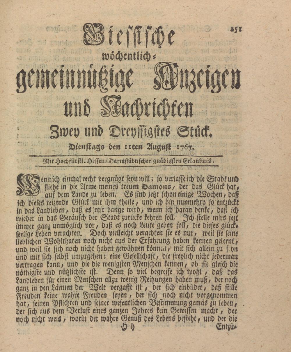 Giessische wöchentliche gemeinnützige Anzeigen und Nachrichten. 1764-1770