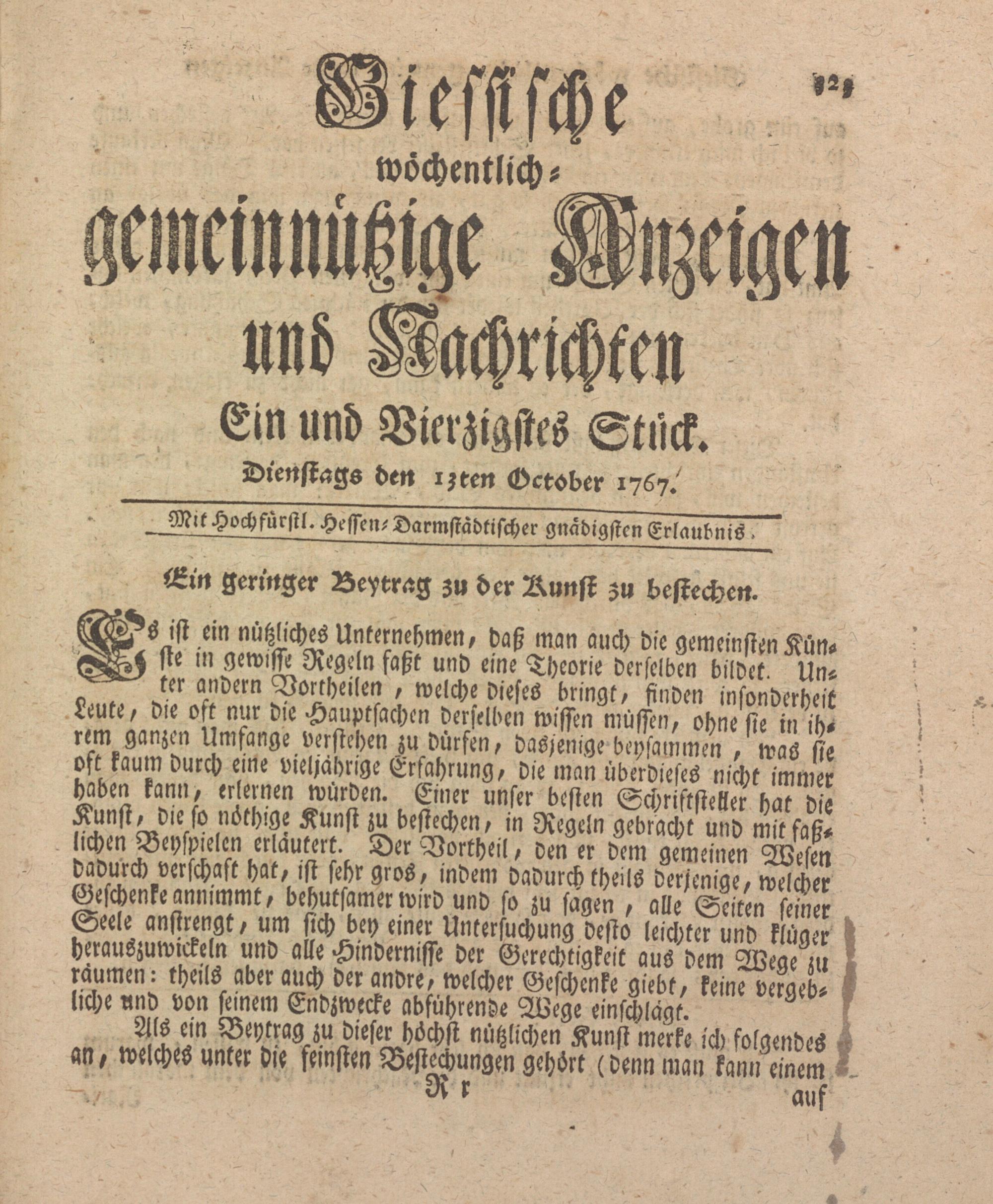 Giessische wöchentliche gemeinnützige Anzeigen und Nachrichten. 1764-1770