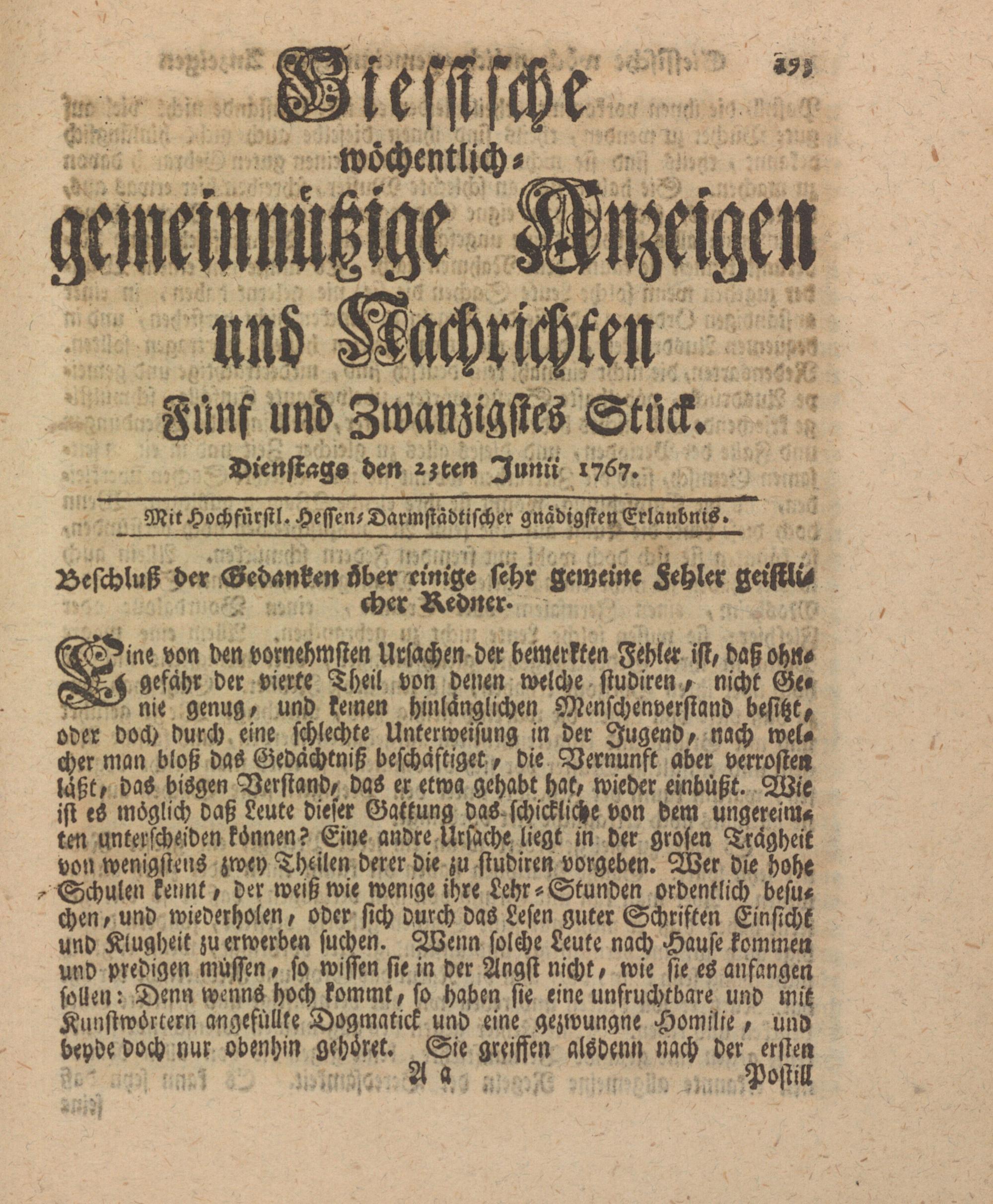 Giessische wöchentliche gemeinnützige Anzeigen und Nachrichten. 1764-1770