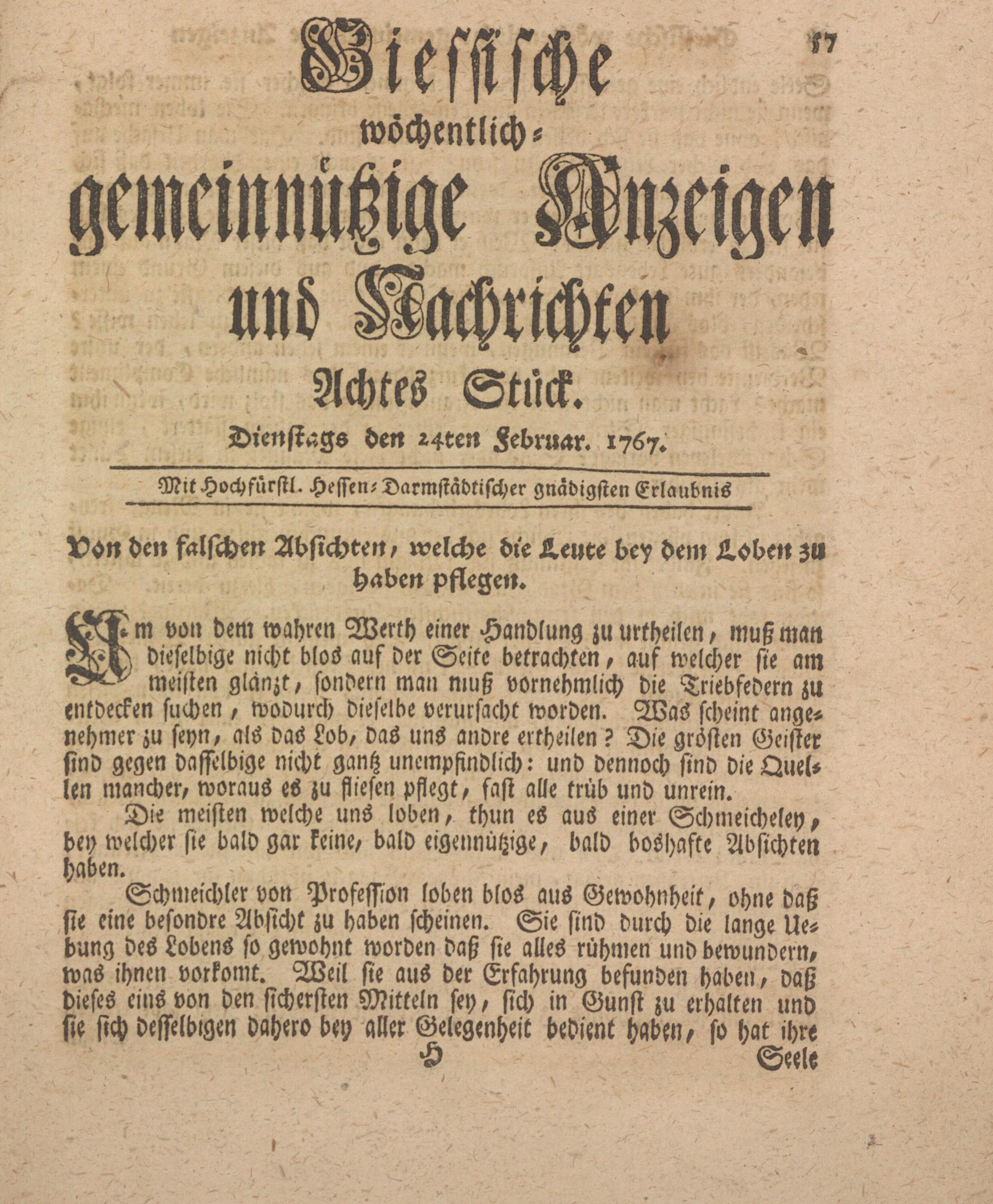 Giessische wöchentliche gemeinnützige Anzeigen und Nachrichten. 1764-1770