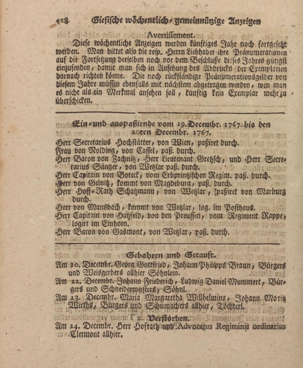 Giessische wöchentliche gemeinnützige Anzeigen und Nachrichten. 1764-1770