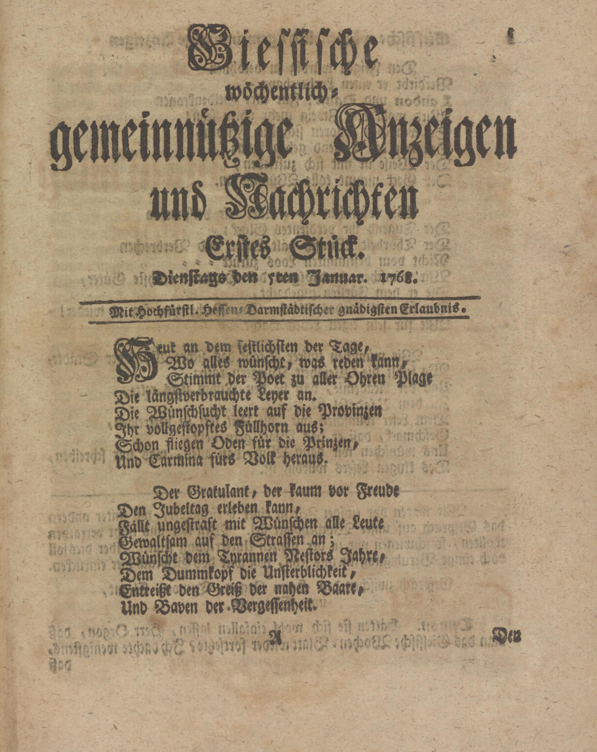 Giessische wöchentliche gemeinnützige Anzeigen und Nachrichten. 1764-1770