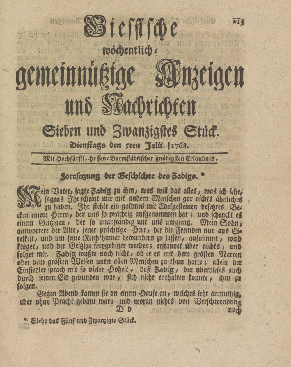 Giessische wöchentliche gemeinnützige Anzeigen und Nachrichten. 1764-1770