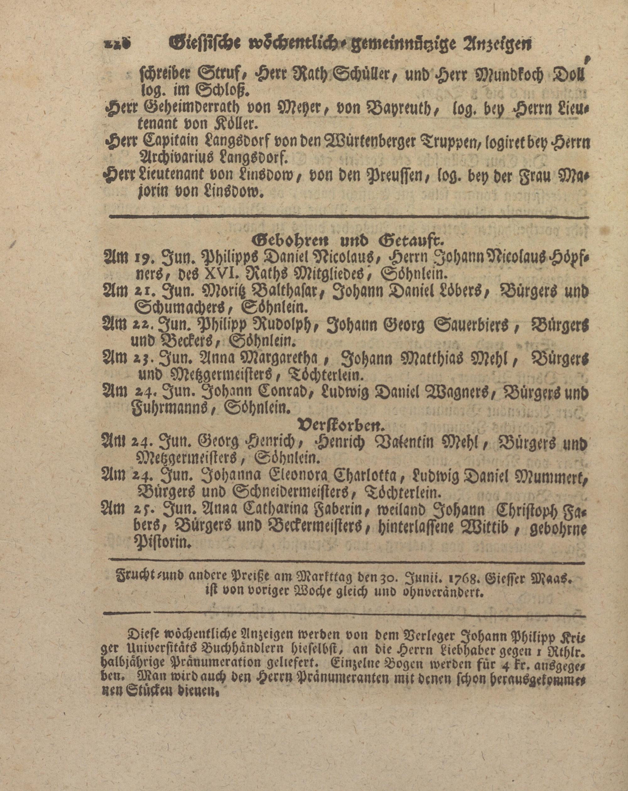 Giessische wöchentliche gemeinnützige Anzeigen und Nachrichten. 1764-1770