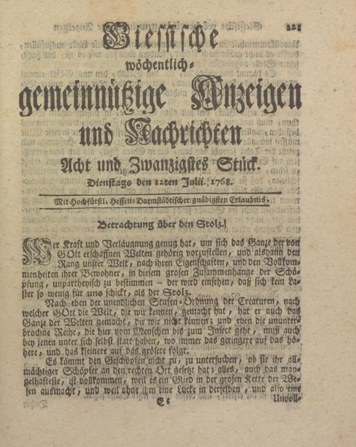 Giessische wöchentliche gemeinnützige Anzeigen und Nachrichten. 1764-1770