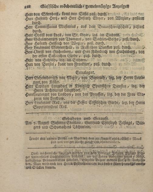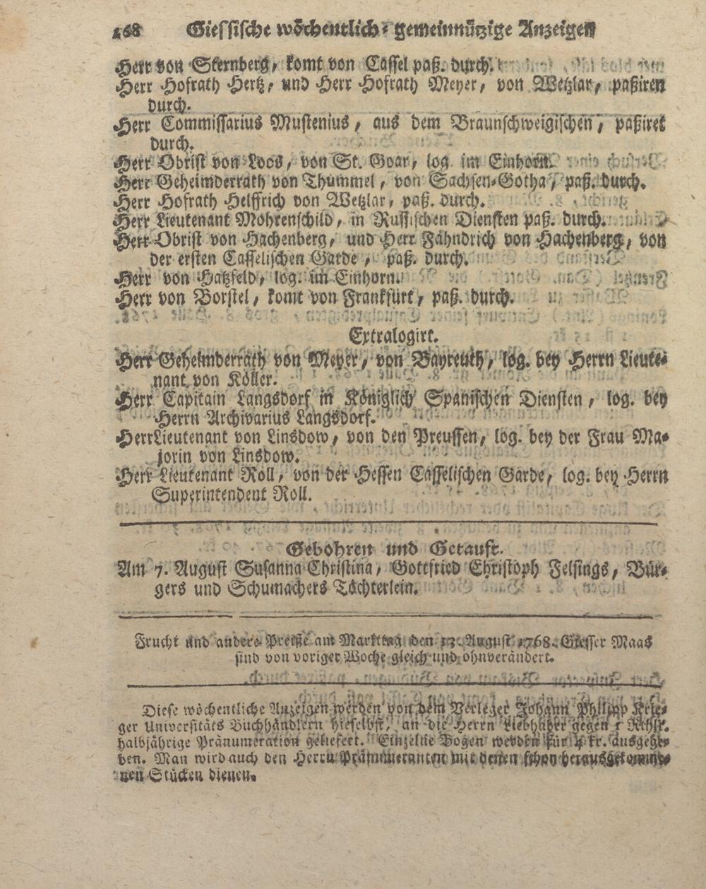 Giessische wöchentliche gemeinnützige Anzeigen und Nachrichten. 1764-1770