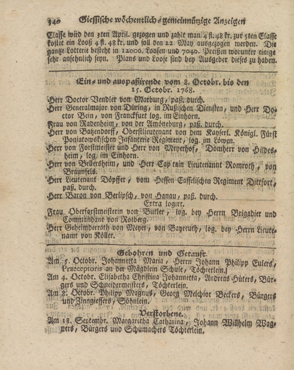 Giessische wöchentliche gemeinnützige Anzeigen und Nachrichten. 1764-1770