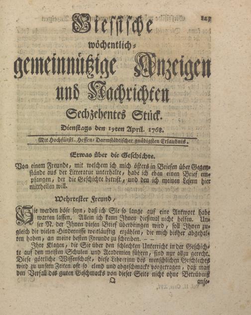 Giessische wöchentliche gemeinnützige Anzeigen und Nachrichten. 1764-1770