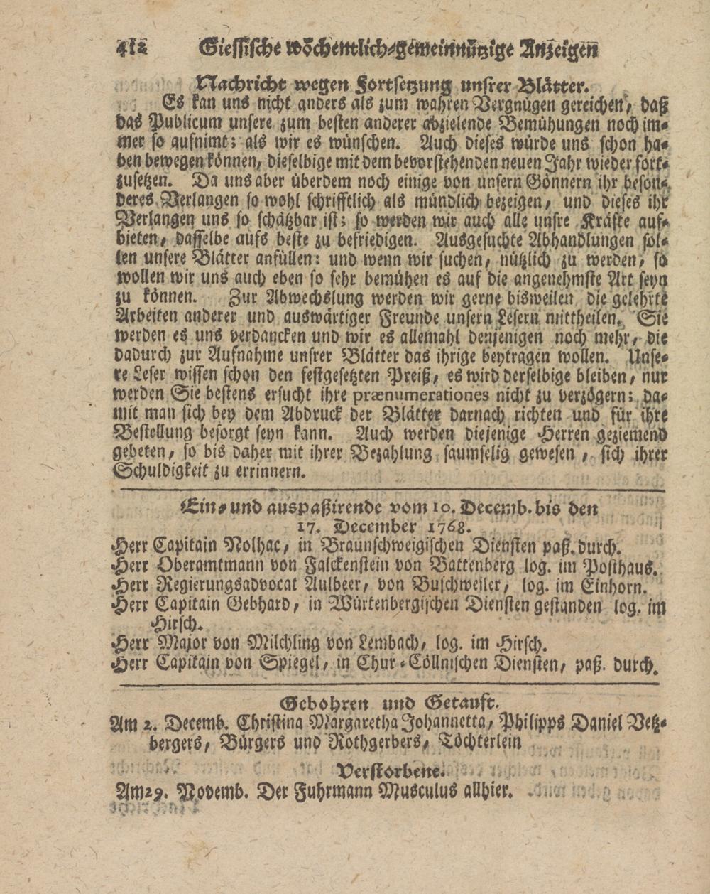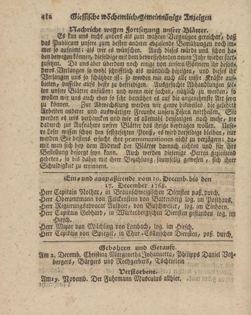 Giessische wöchentliche gemeinnützige Anzeigen und Nachrichten. 1764-1770