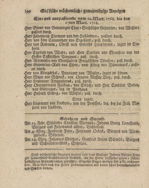 Giessische wöchentliche gemeinnützige Anzeigen und Nachrichten. 1764-1770