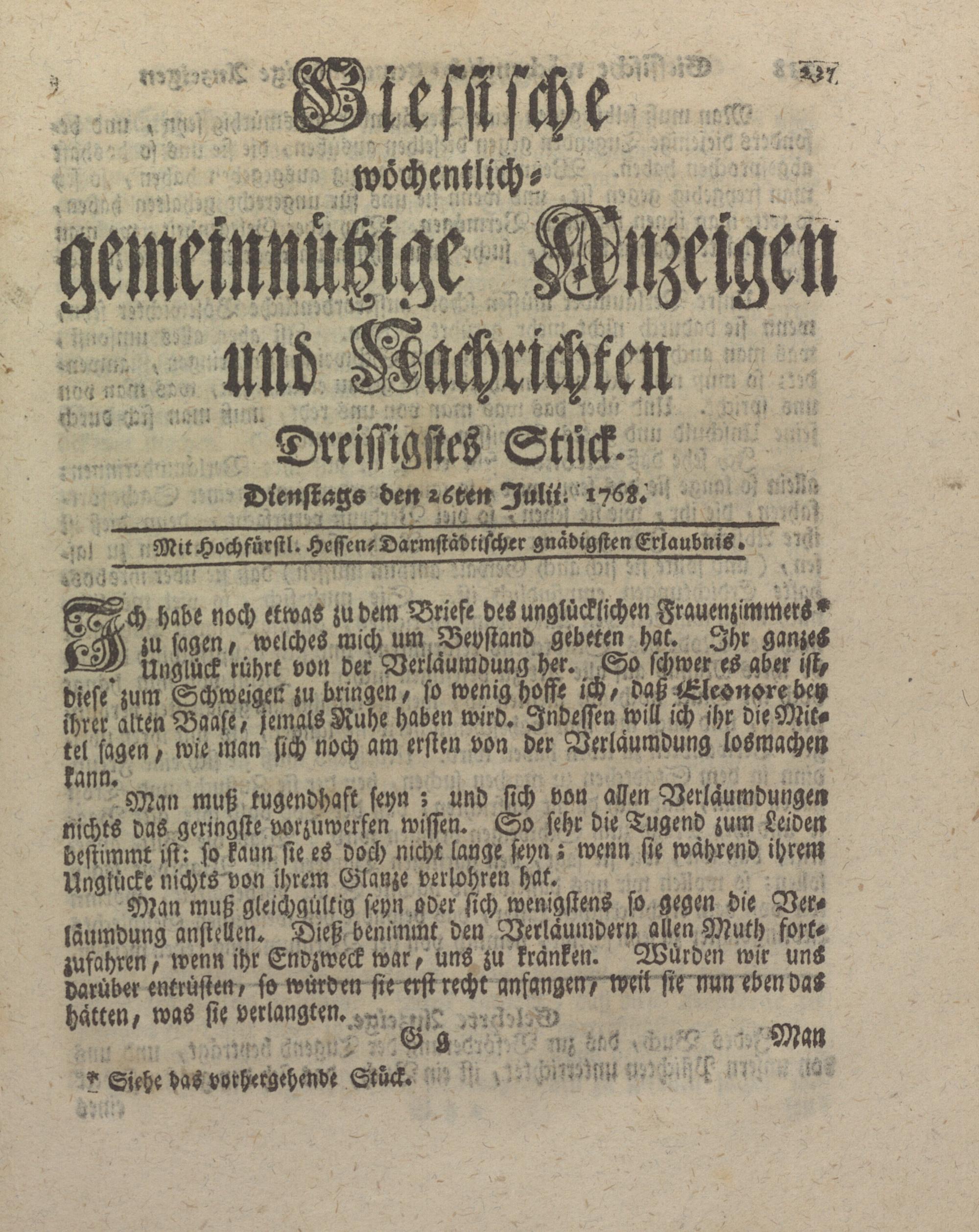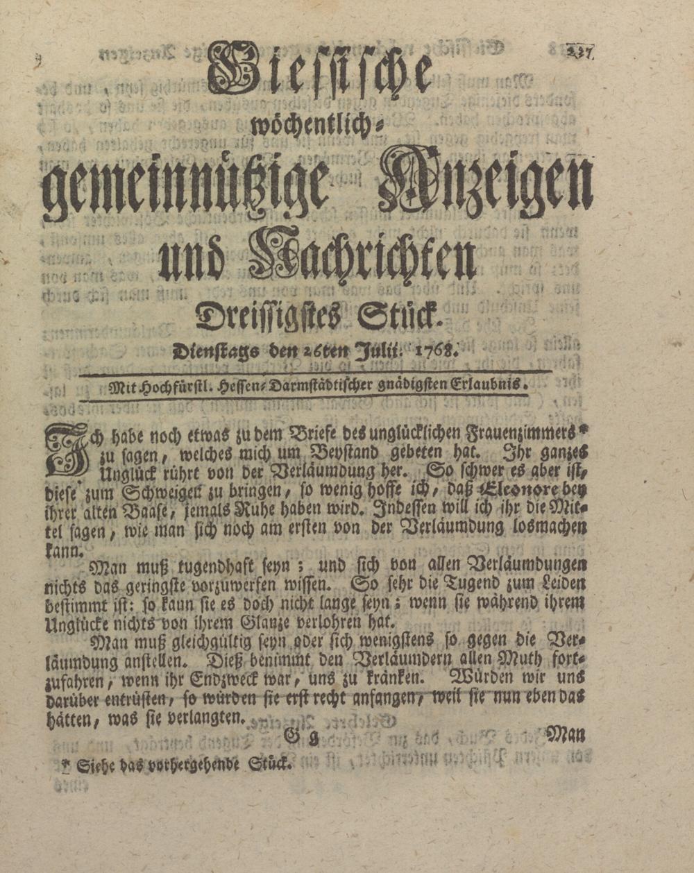 Giessische wöchentliche gemeinnützige Anzeigen und Nachrichten. 1764-1770