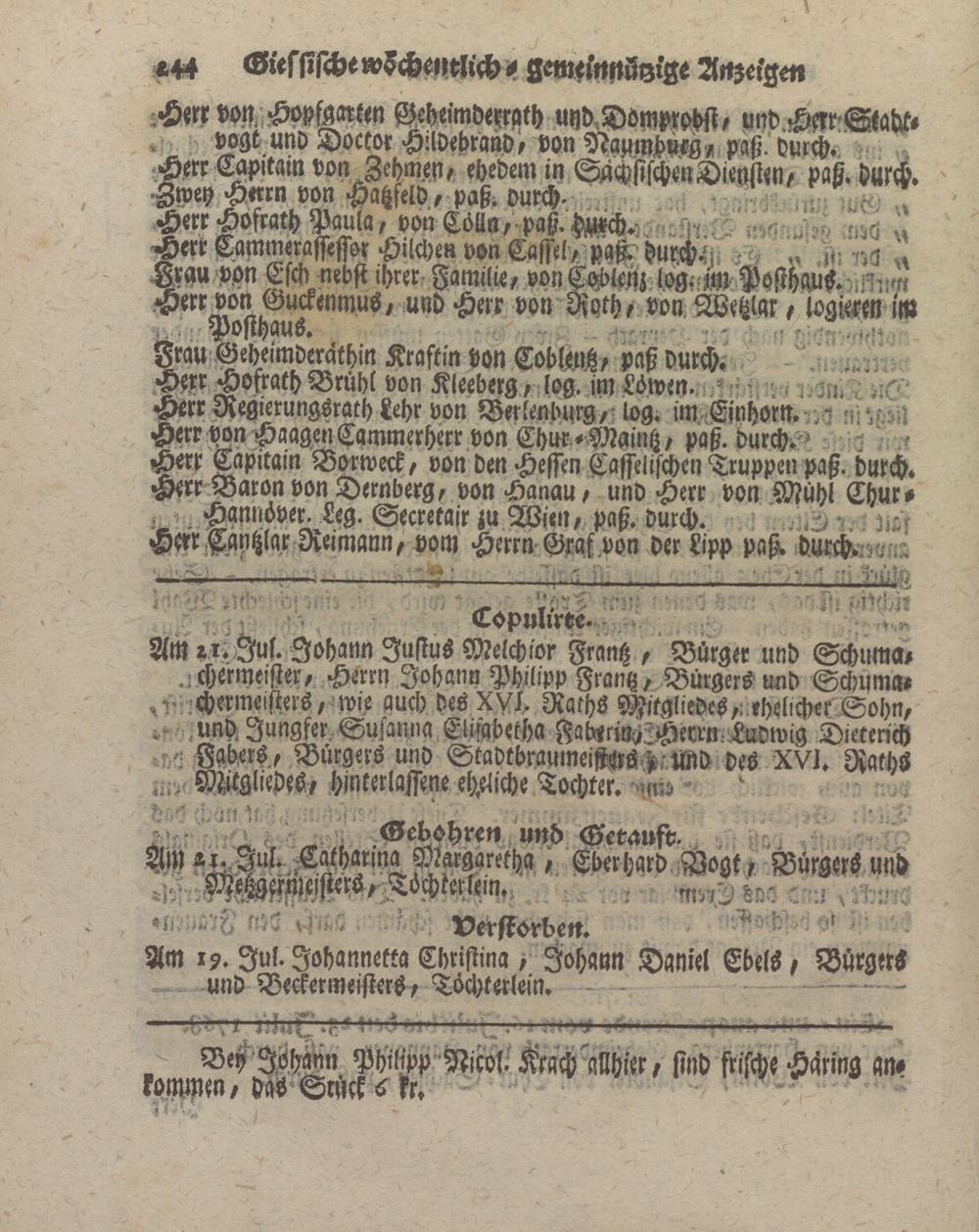 Giessische wöchentliche gemeinnützige Anzeigen und Nachrichten. 1764-1770