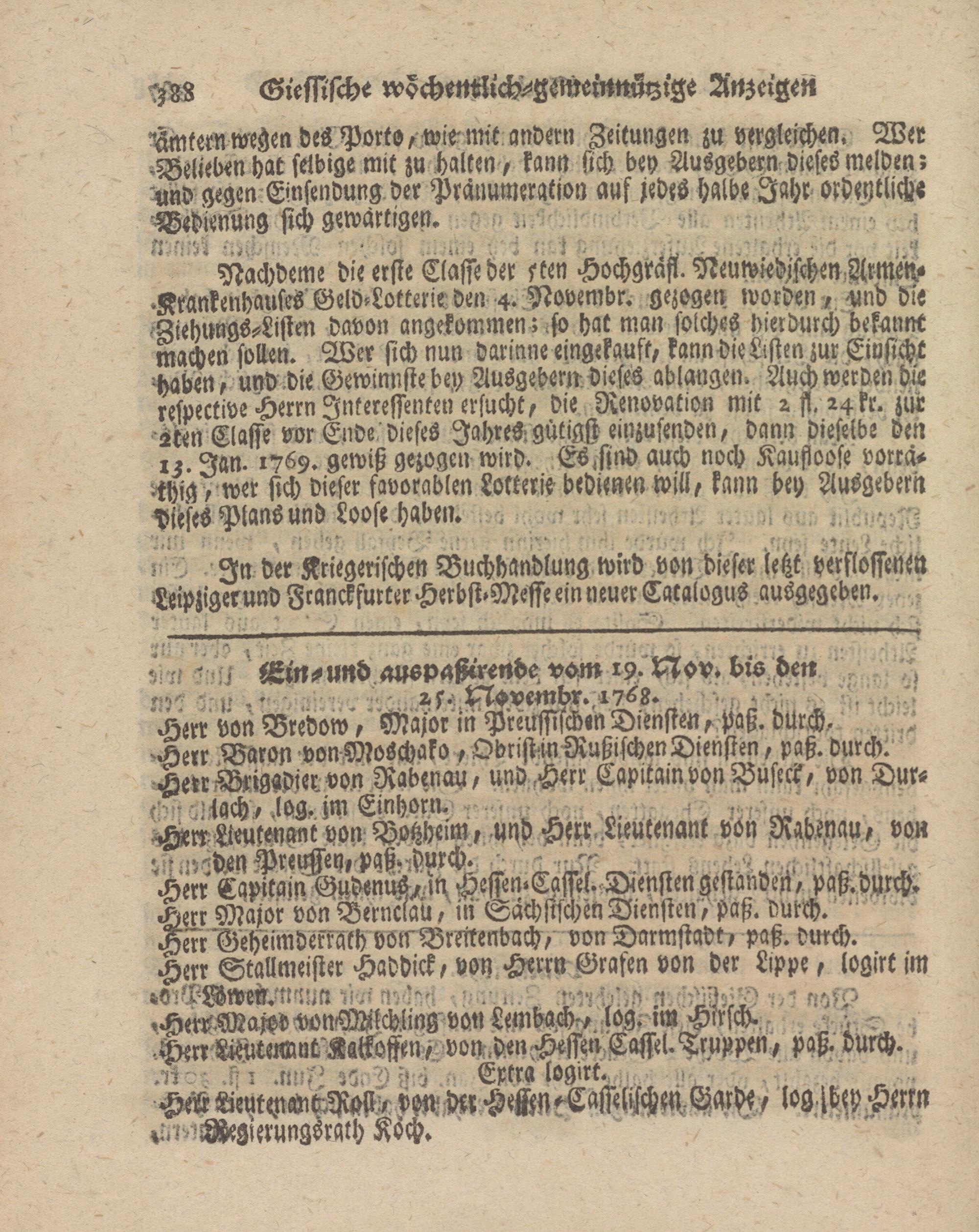 Giessische wöchentliche gemeinnützige Anzeigen und Nachrichten. 1764-1770