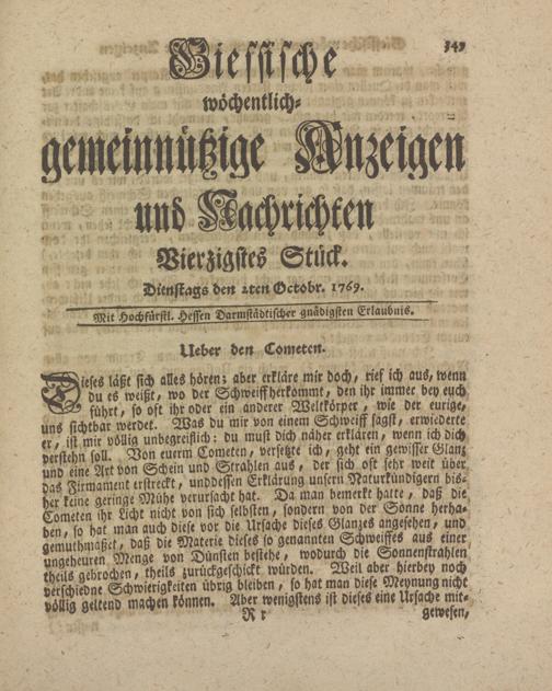 Giessische wöchentliche gemeinnützige Anzeigen und Nachrichten. 1764-1770