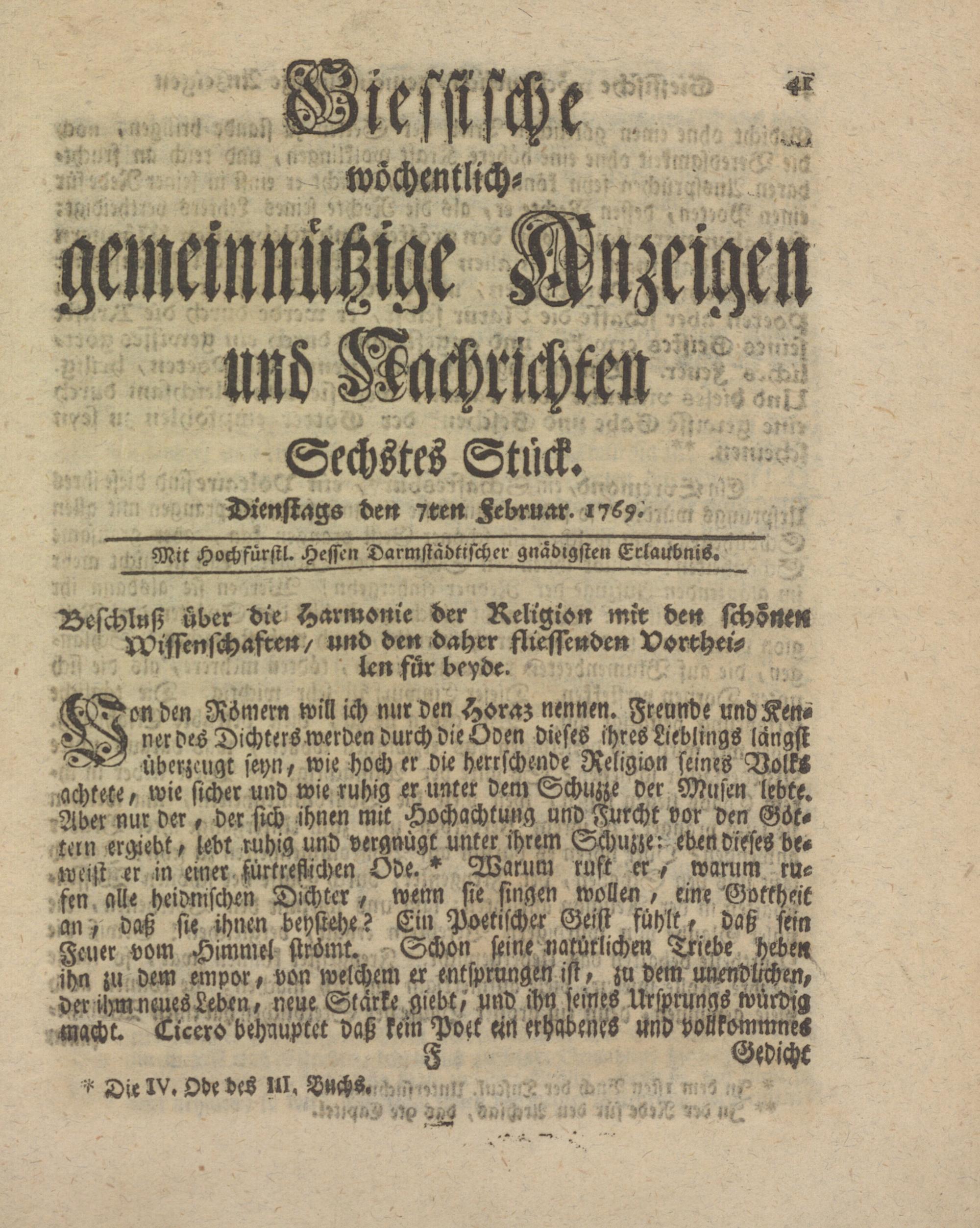 Giessische wöchentliche gemeinnützige Anzeigen und Nachrichten. 1764-1770