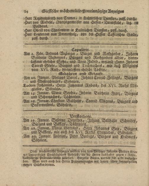 Giessische wöchentliche gemeinnützige Anzeigen und Nachrichten. 1764-1770