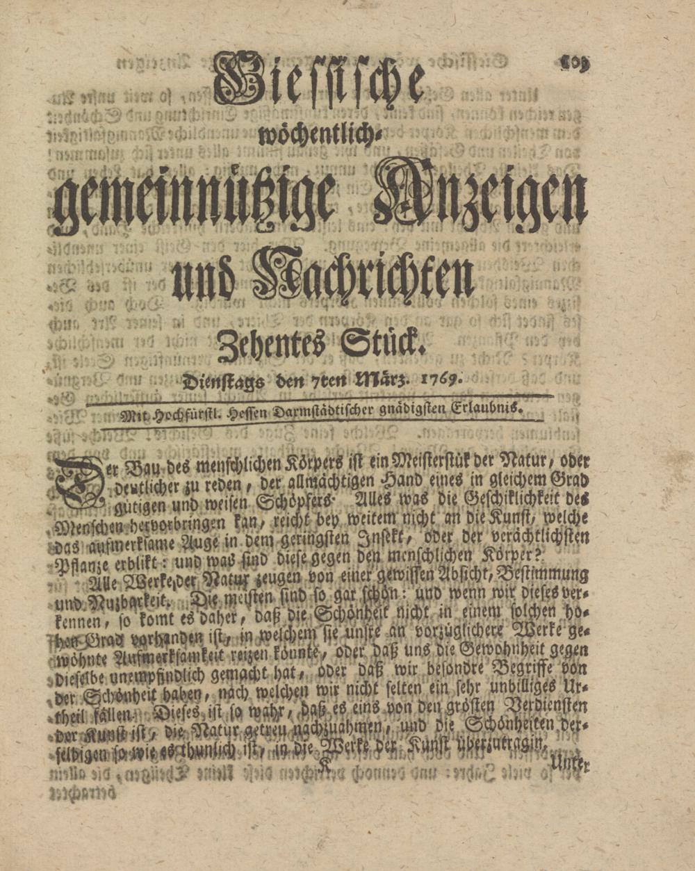 Giessische wöchentliche gemeinnützige Anzeigen und Nachrichten. 1764-1770