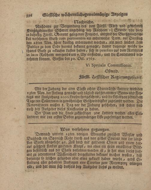 Giessische wöchentliche gemeinnützige Anzeigen und Nachrichten. 1764-1770