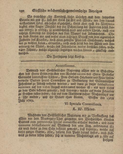 Giessische wöchentliche gemeinnützige Anzeigen und Nachrichten. 1764-1770