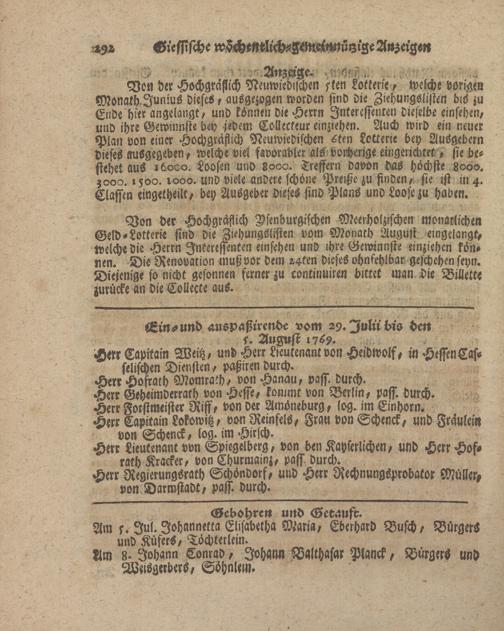 Giessische wöchentliche gemeinnützige Anzeigen und Nachrichten. 1764-1770
