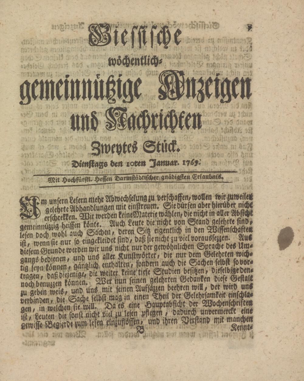 Giessische wöchentliche gemeinnützige Anzeigen und Nachrichten. 1764-1770