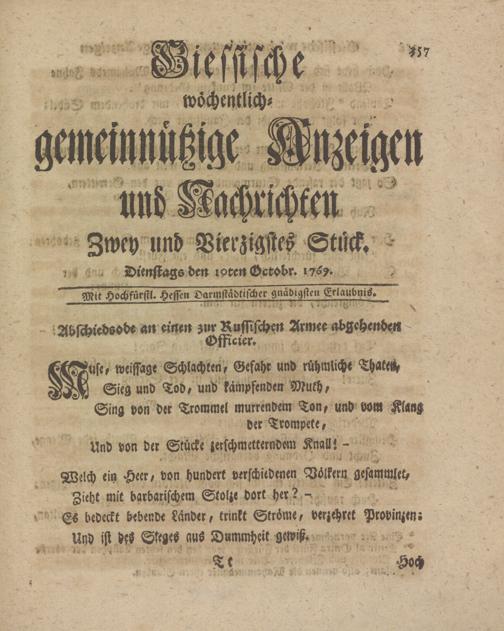 Giessische wöchentliche gemeinnützige Anzeigen und Nachrichten. 1764-1770