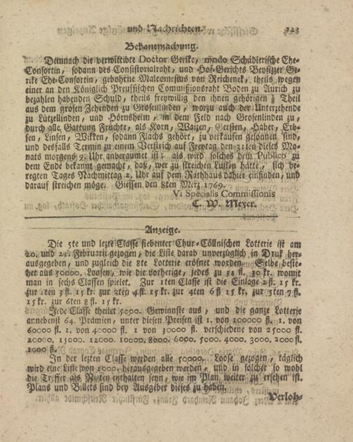 Giessische wöchentliche gemeinnützige Anzeigen und Nachrichten. 1764-1770