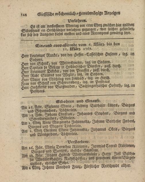 Giessische wöchentliche gemeinnützige Anzeigen und Nachrichten. 1764-1770