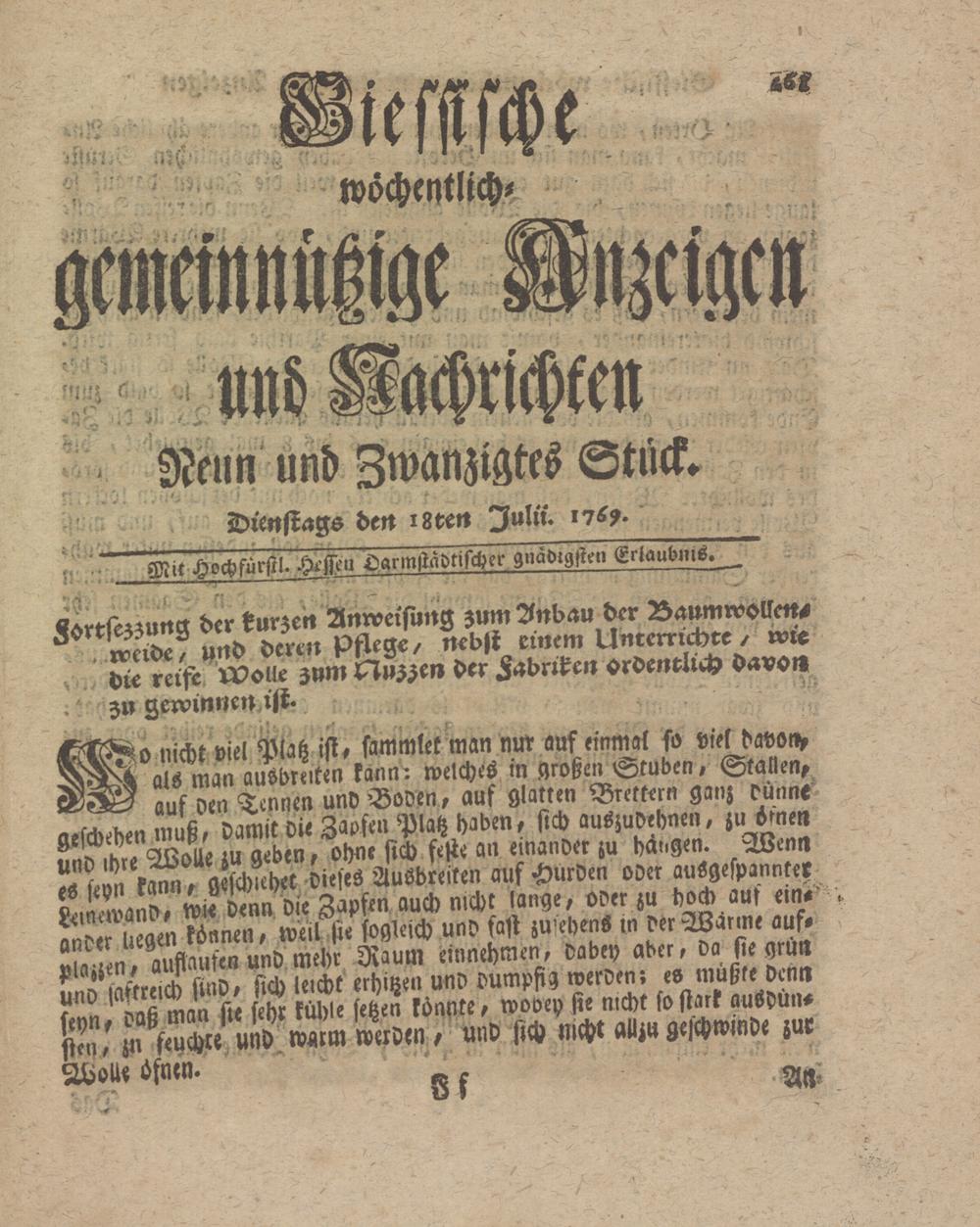 Giessische wöchentliche gemeinnützige Anzeigen und Nachrichten. 1764-1770
