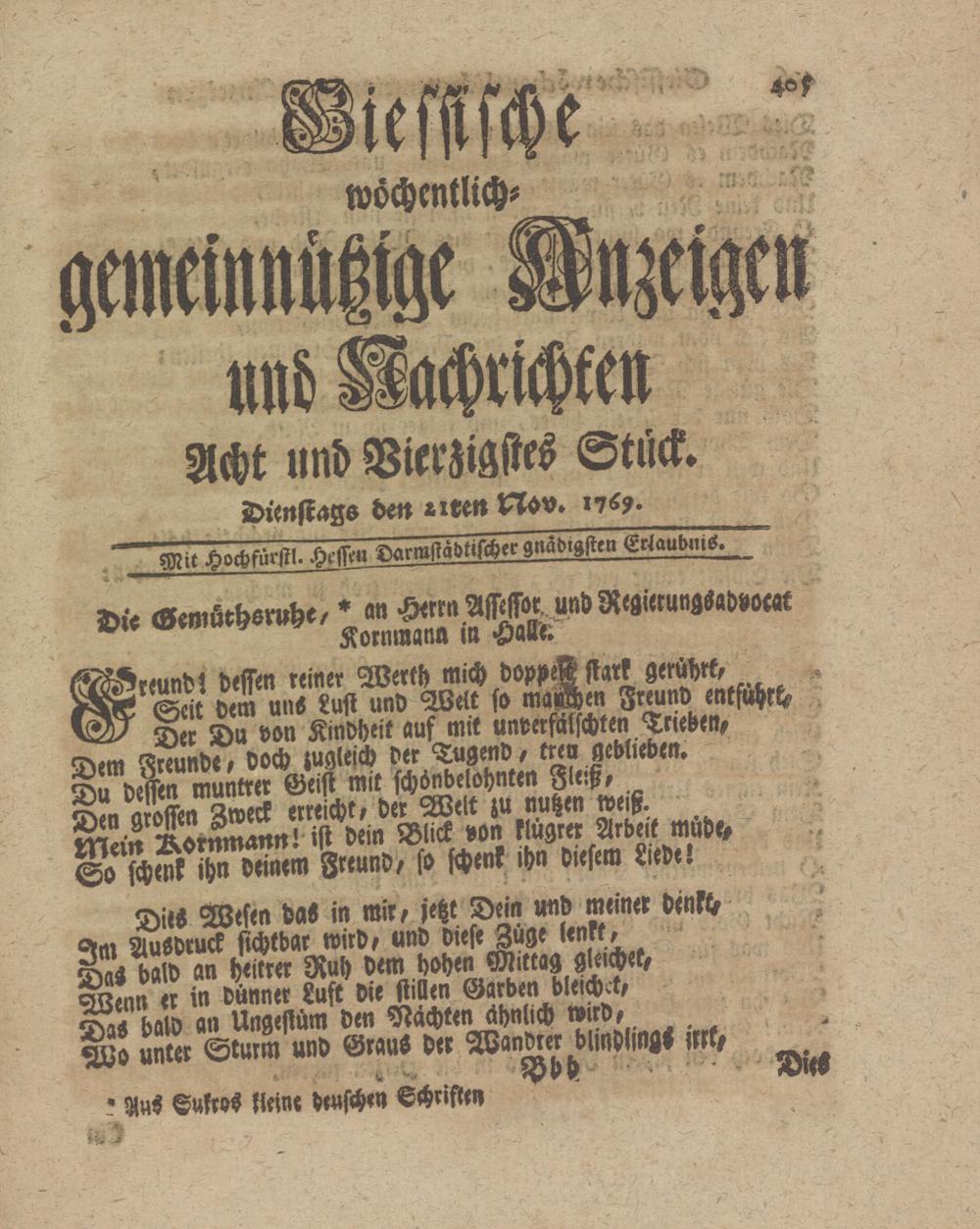 Giessische wöchentliche gemeinnützige Anzeigen und Nachrichten. 1764-1770