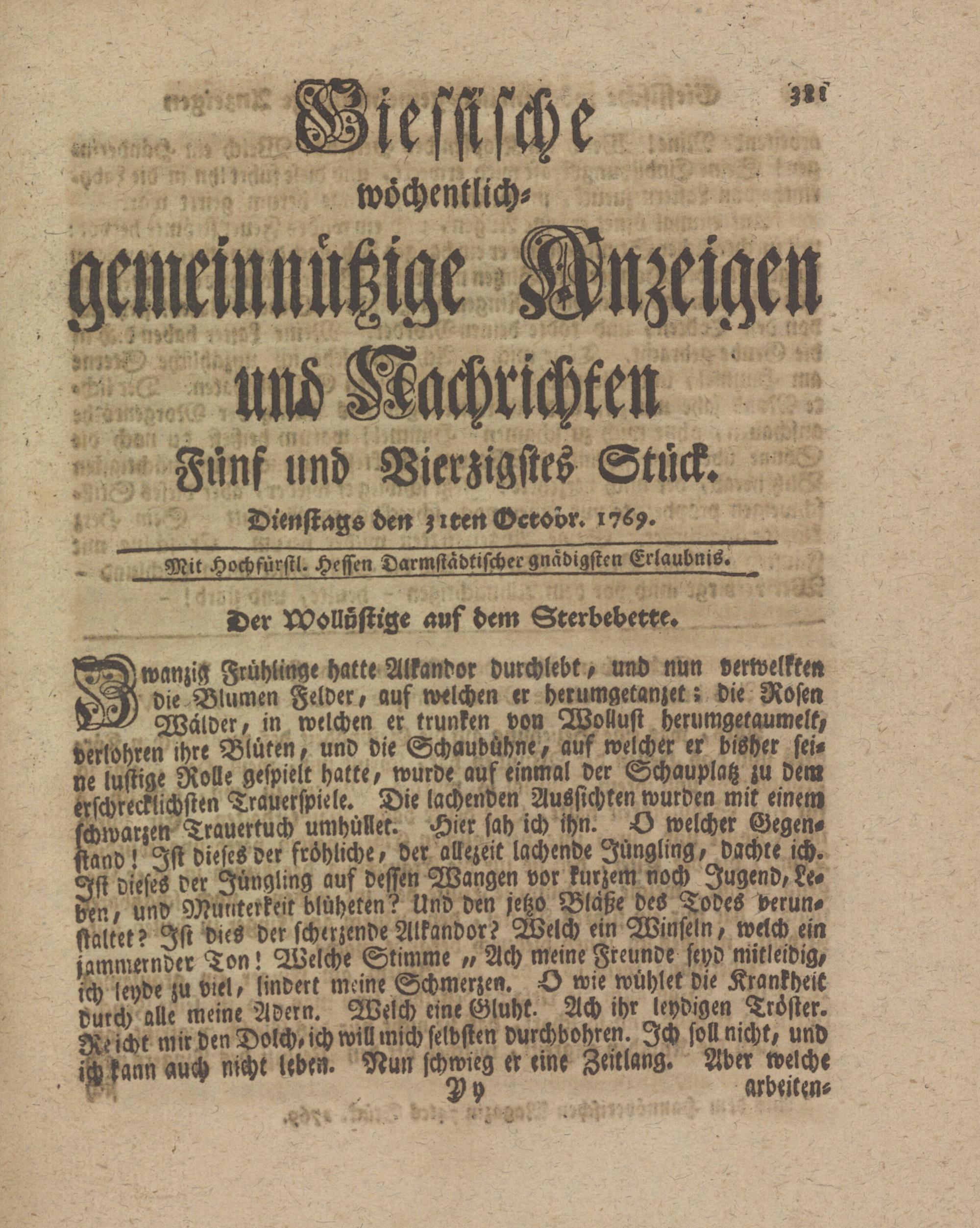 Giessische wöchentliche gemeinnützige Anzeigen und Nachrichten. 1764-1770
