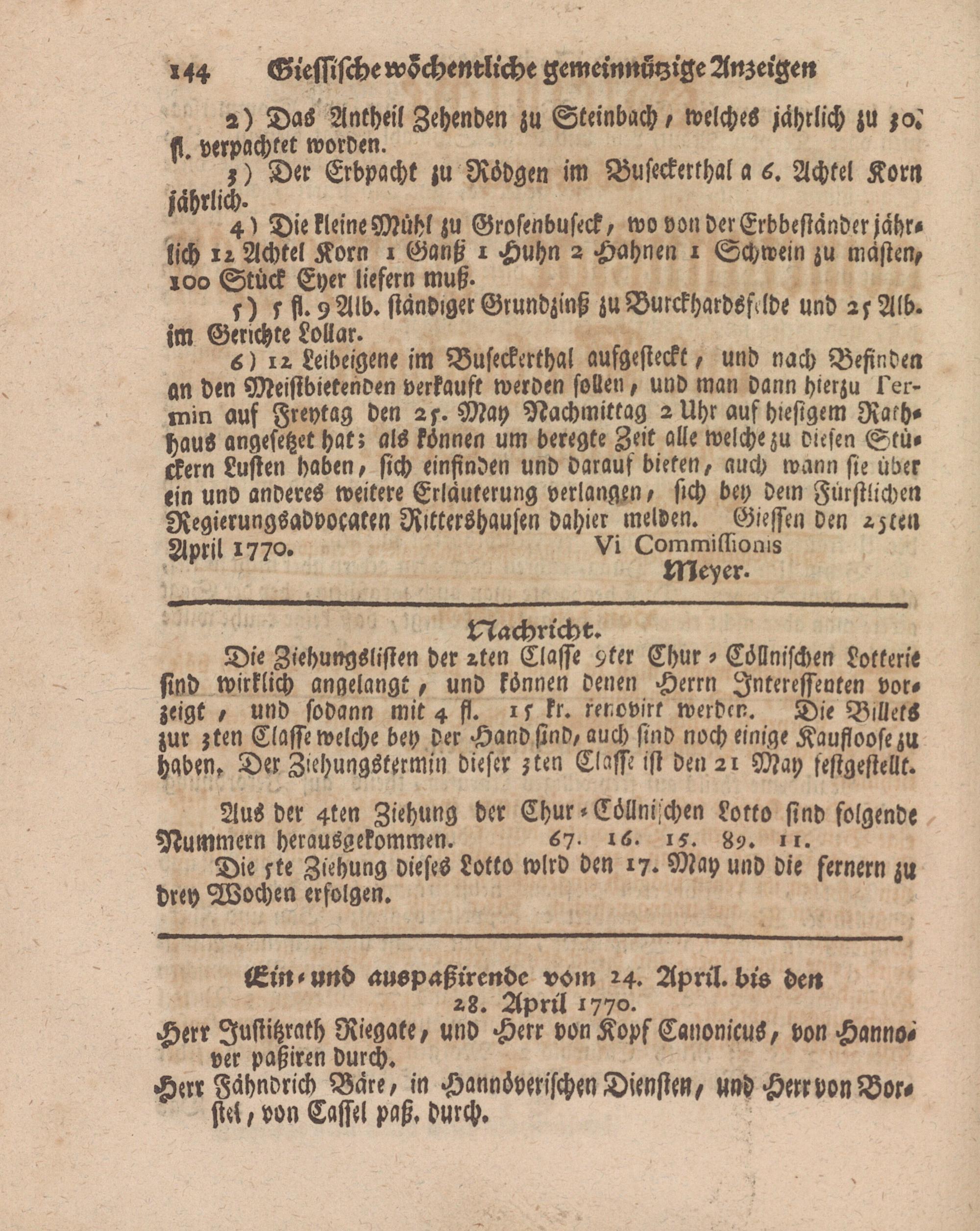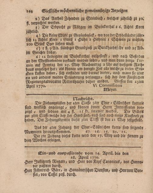 Giessische wöchentliche gemeinnützige Anzeigen und Nachrichten. 1764-1770
