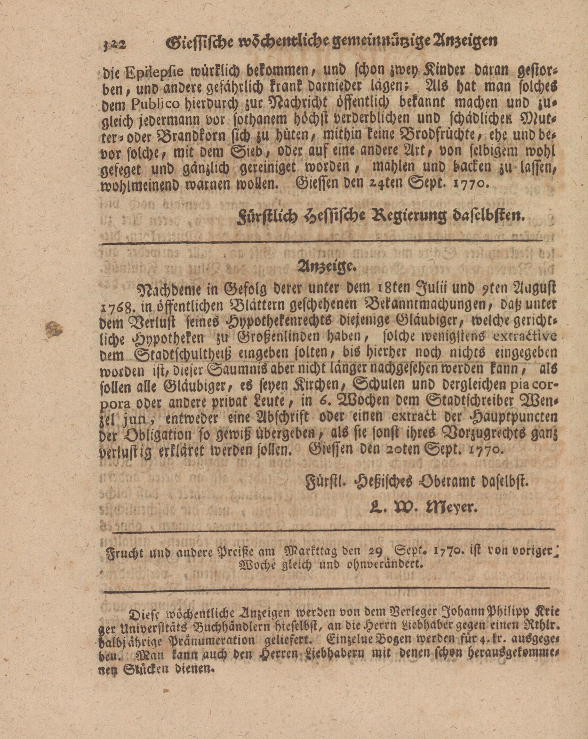 Giessische wöchentliche gemeinnützige Anzeigen und Nachrichten. 1764-1770