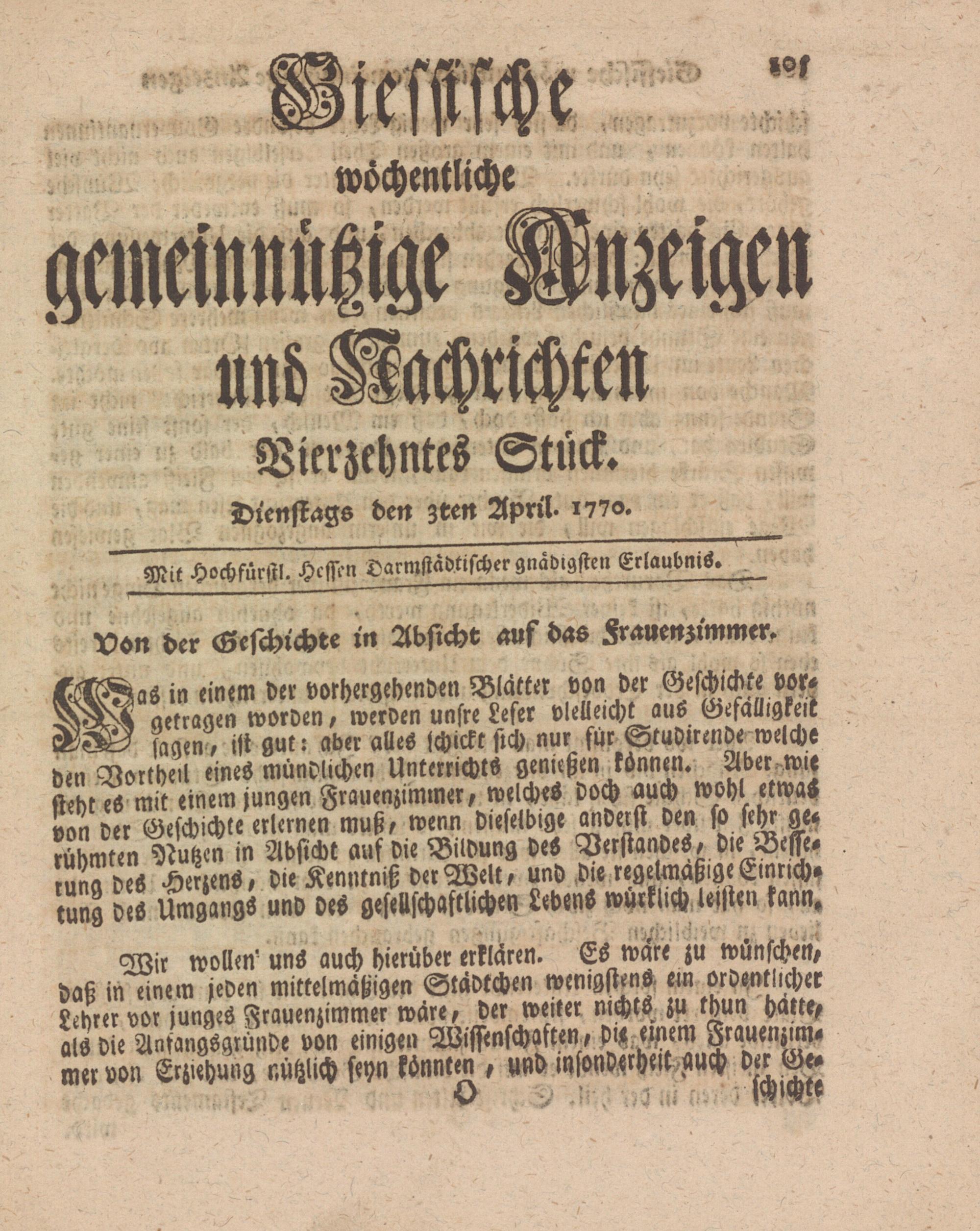 Giessische wöchentliche gemeinnützige Anzeigen und Nachrichten. 1764-1770