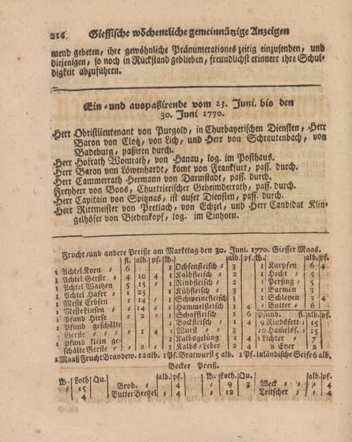 Giessische wöchentliche gemeinnützige Anzeigen und Nachrichten. 1764-1770