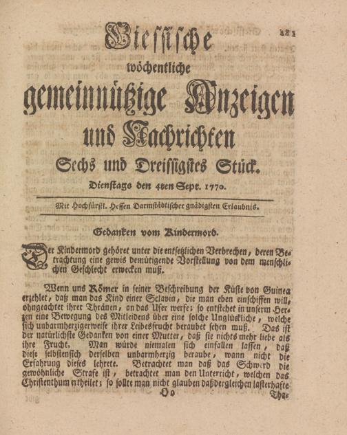 Giessische wöchentliche gemeinnützige Anzeigen und Nachrichten. 1764-1770