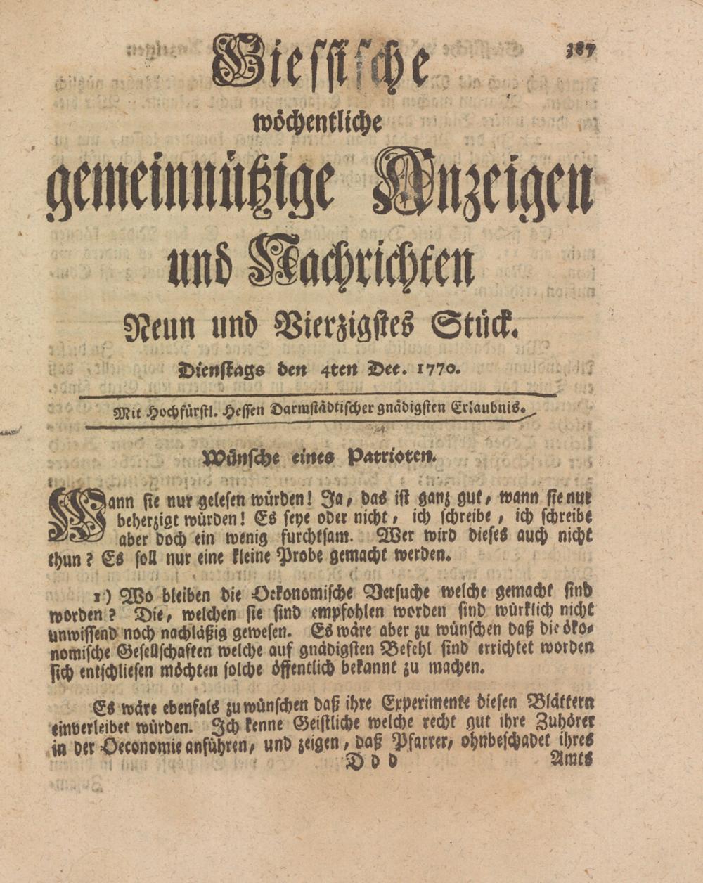 Giessische wöchentliche gemeinnützige Anzeigen und Nachrichten. 1764-1770