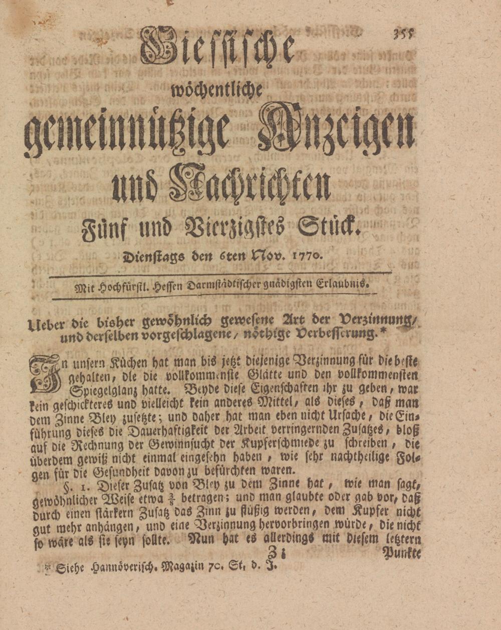 Giessische wöchentliche gemeinnützige Anzeigen und Nachrichten. 1764-1770