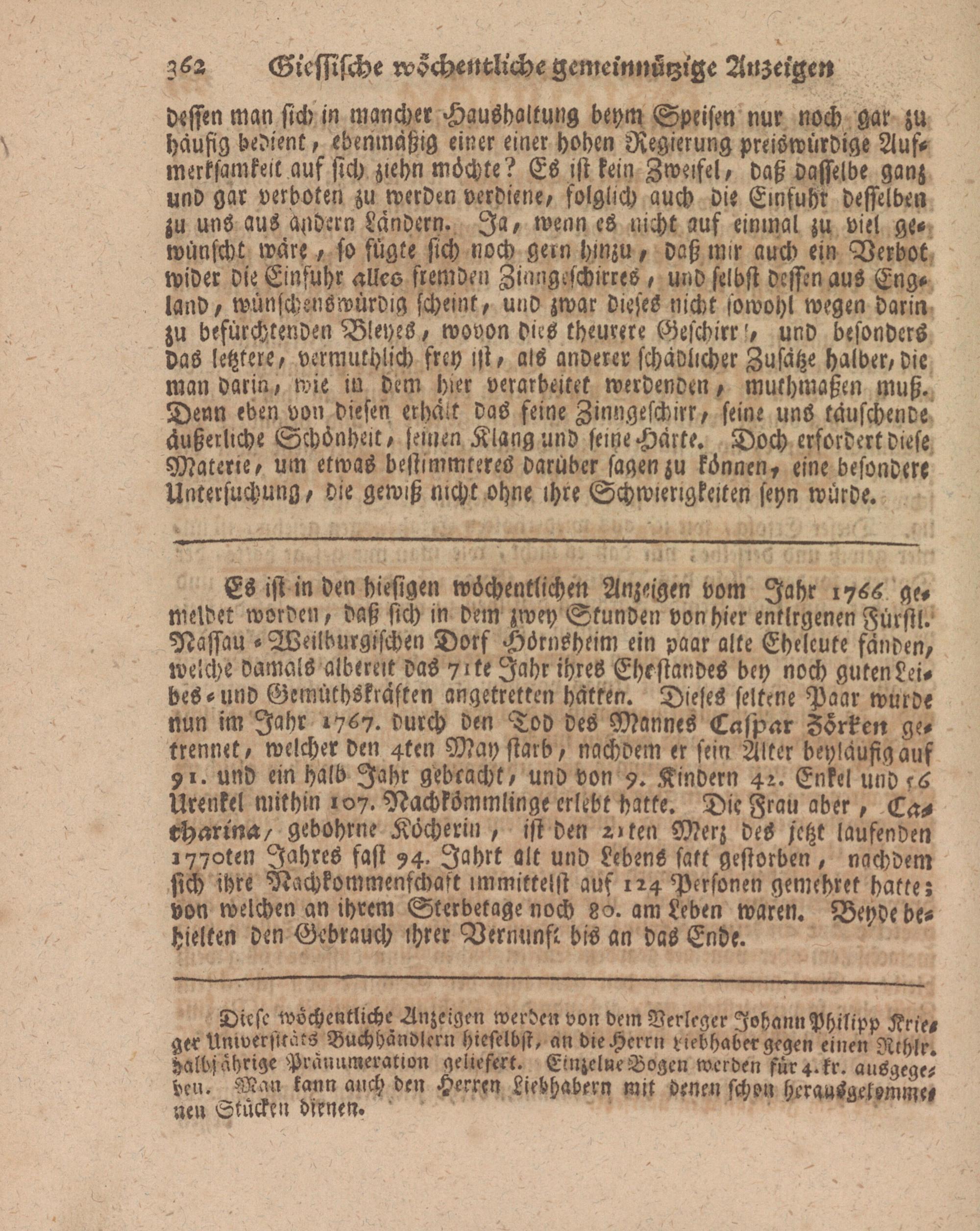 Giessische wöchentliche gemeinnützige Anzeigen und Nachrichten. 1764-1770