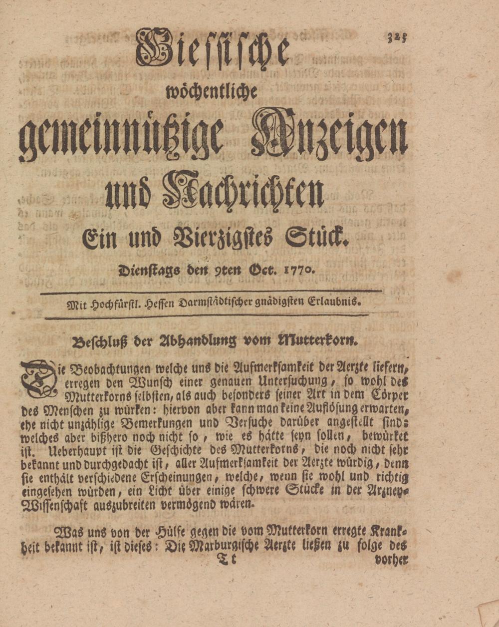 Giessische wöchentliche gemeinnützige Anzeigen und Nachrichten. 1764-1770