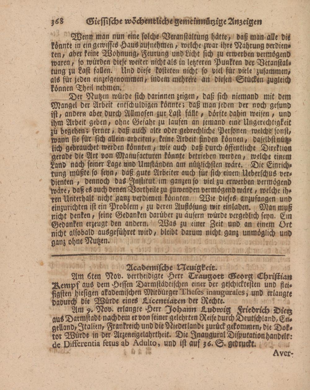 Giessische wöchentliche gemeinnützige Anzeigen und Nachrichten. 1764-1770