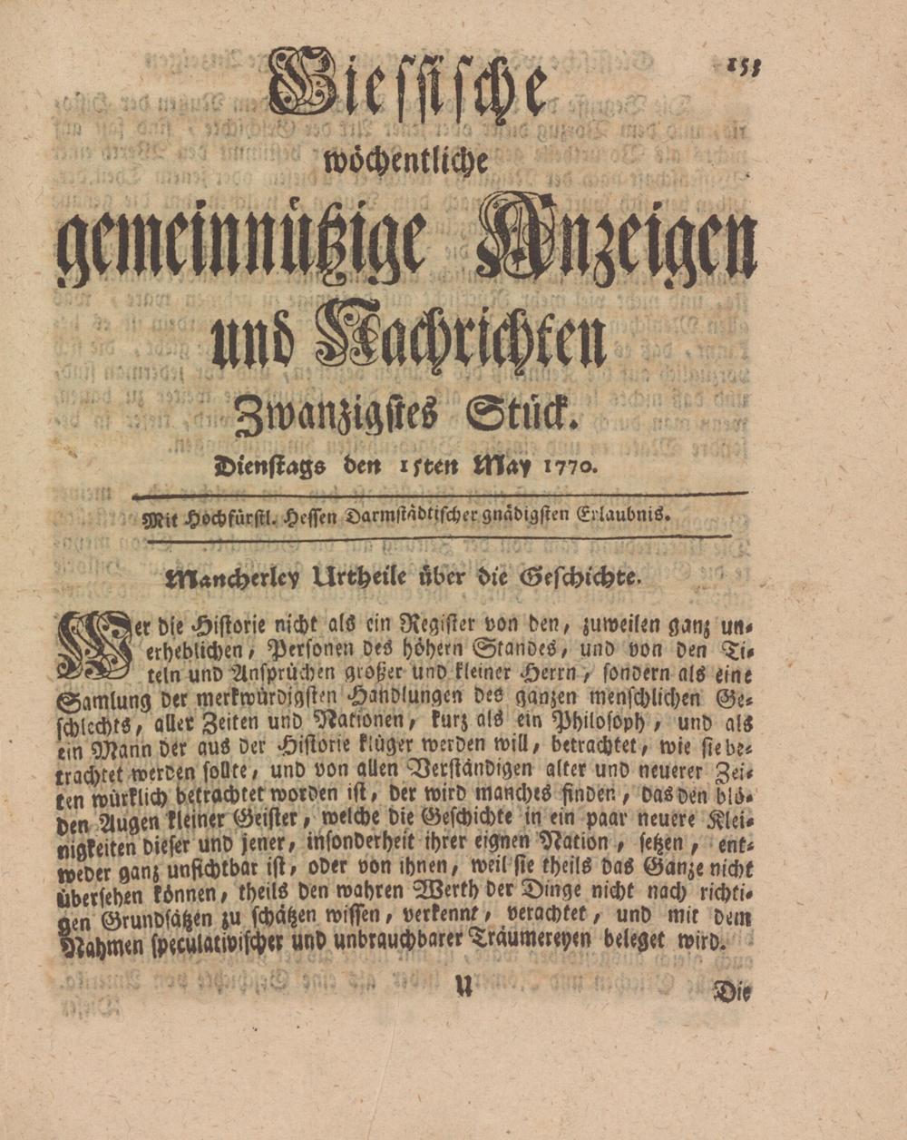 Giessische wöchentliche gemeinnützige Anzeigen und Nachrichten. 1764-1770
