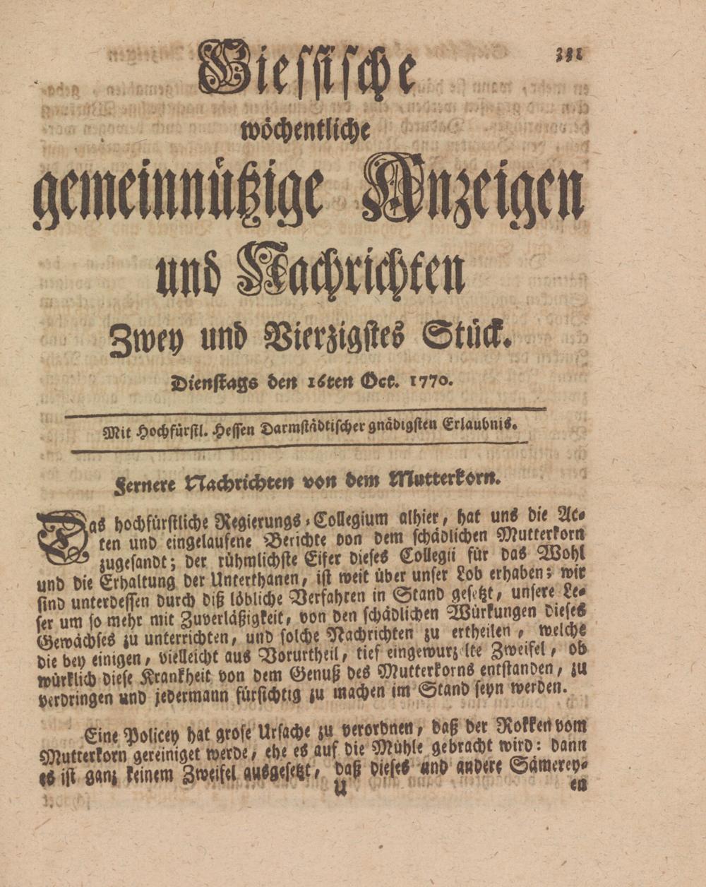 Giessische wöchentliche gemeinnützige Anzeigen und Nachrichten. 1764-1770
