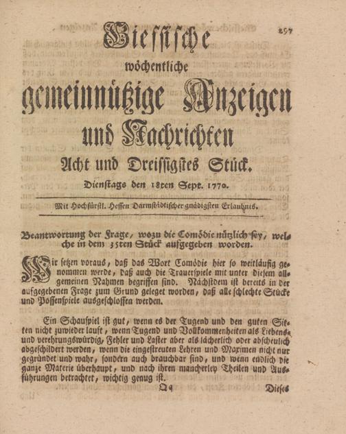 Giessische wöchentliche gemeinnützige Anzeigen und Nachrichten. 1764-1770