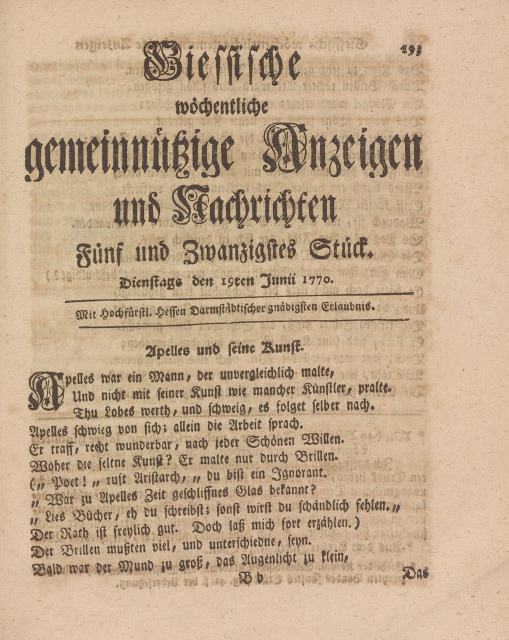 Giessische wöchentliche gemeinnützige Anzeigen und Nachrichten. 1764-1770