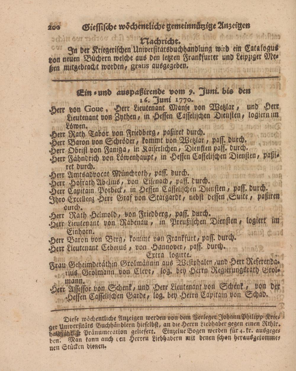 Giessische wöchentliche gemeinnützige Anzeigen und Nachrichten. 1764-1770