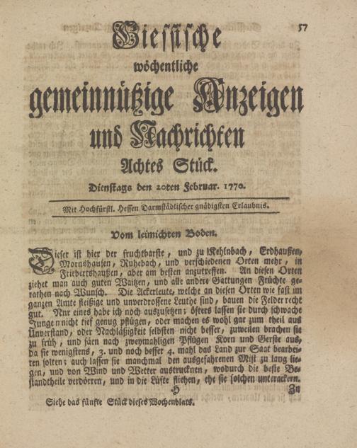 Giessische wöchentliche gemeinnützige Anzeigen und Nachrichten. 1764-1770